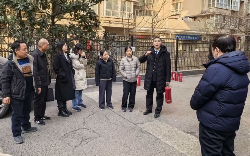 理论学习结束后,实操演练在办公楼下就近开展。徐鹏主任现场示范灭火器操作步骤,针对“提、拔、握、压”关键动作进行详细拆解,并采取“逐一操作、现场纠正”的精细化教学模式,确保每位参会人员都能熟练掌握灭火器使用技巧,有效杜绝“只学不练、学用脱节”的形式化问题。